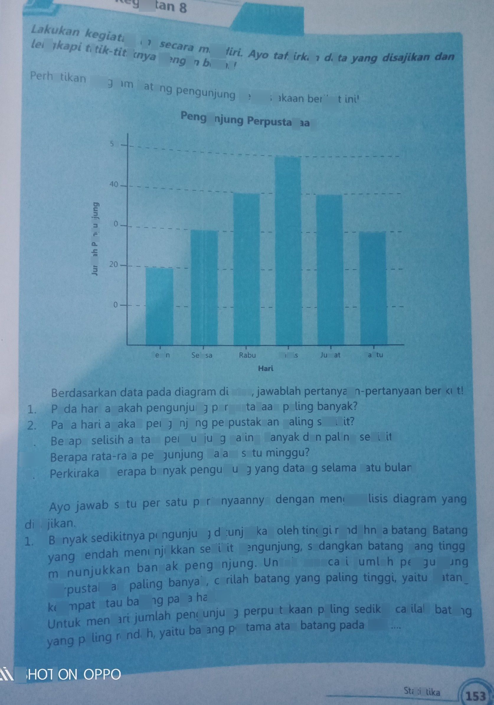 hari senin sebanyak hari selasa sebanyak hari rabu sebanyak hari kamis sebanyak hari jumat sebanyak hari sabtu sebanyak. Dua perayaan ini memiliki tujuan yang sama yaitu pembiasaan berkunjung ke perpustakaan dan kegiatan membaca. Perayaan hari kunjung perpustakaan ini bertepatan dengan bulan gemar membaca. 4 suatu tanaman dipanen setelah umur 4 bulan 2 minggu 11 hari. Ia hanya ingat pada hari jumat jumlah pengunjung mengalami kenaikan sebanyak 50 pengunjung dari hari sebelumnya. Pertama cari selisih hari ini dengan tanggal kelahiran saya. Suatu hari ani menemukan sobekan koran yang memuat data pengunjung perpustakaan berupa gambar diagram batang sebagai berikut. Seminar sehari bagi pustakawan upt perpustakaan universitas negeri padang dengan tema: perpustakaan palnam dan perpustakaan tendean di bawah pengelolaan dinas perpustakaan dan kearsipan (dispersip) kalimantan selatan secara resmi kembali beroperasi pada senin (6/7/2020). Penambahan jam dimulai hari sabtu (7/3/2020) besok hingga seterusnya. Kepala dinas perpustakaan dan kearsipan provinsi kalimantan selatan hj dra nurliani dardie m.ap, mengatakan kepada wartawan liputan4.com, rabu (17/3), layanan akhir pekan sengaja dibuka dalam rangka memenuhi aspirasi warga kota akan. Berdasarkan kebutuhan tersebut tercatat ada 5 barang yang harus dibeli yaitu 9 buku tulis, 10 pensil, 5 penghapus, 3 bolpoin, dan 5. selisih banyak beras yang terjual pada hari senin dan kamis adalah.